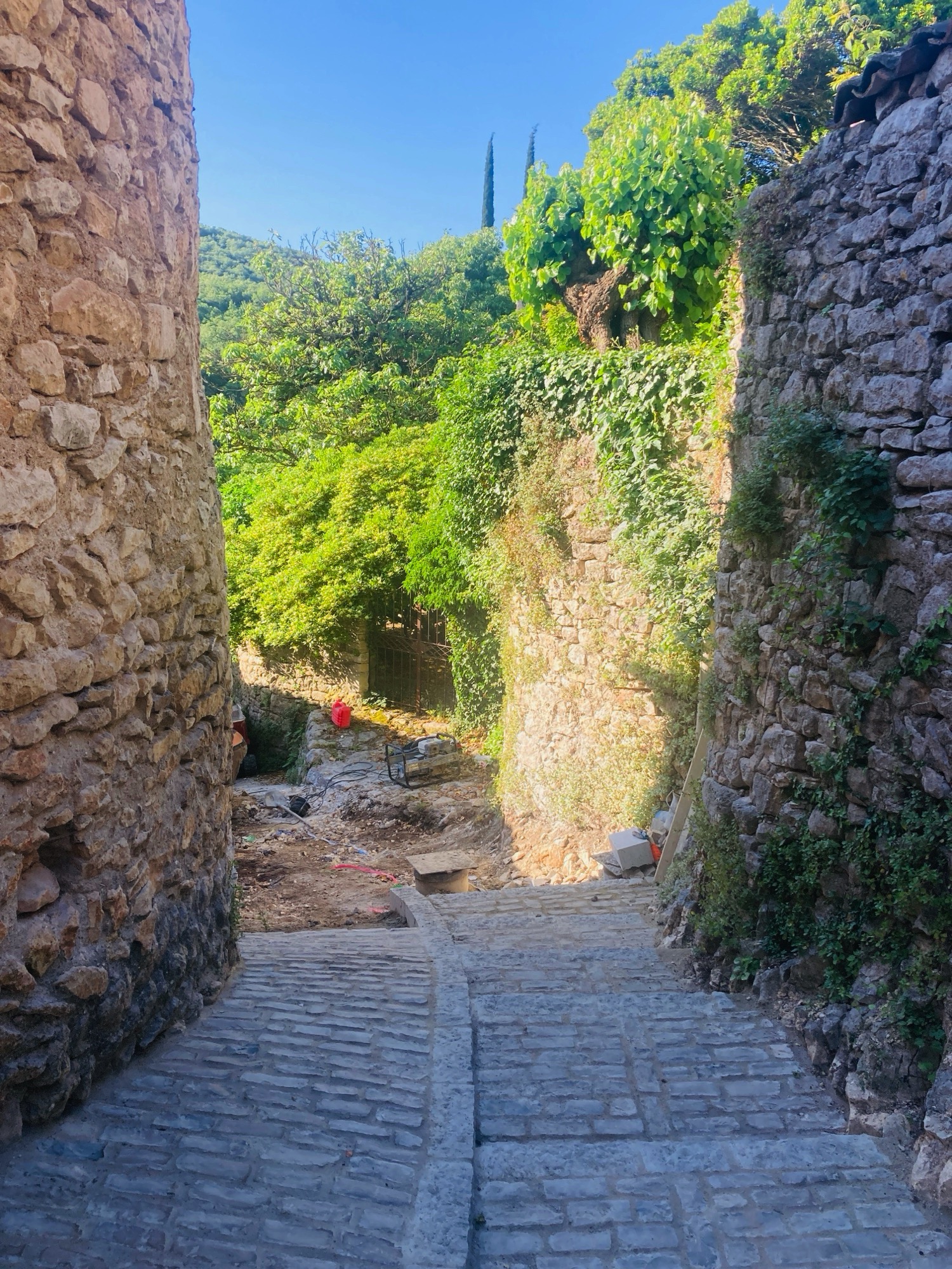 Dans la continuité des aménagements engagés ces dernières années, la partie basse de la rue des Plaisirs a fait l’objet d’un traitement de surface en calade. Cette intervention participe à la mise en valeur du centre ancien et à l’amélioration du confort de circulation. La nouvelle calade renforce l’unité esthétique du cœur de village tout en s’inscrivant dans le respect du caractère patrimonial des lieux. Ces travaux correspondent à la tranche 3 du programme d’aménagement. Le « Passage du Buissas » constitue la tranche suivante, qui fera l’objet d’une réalisation ultérieure.