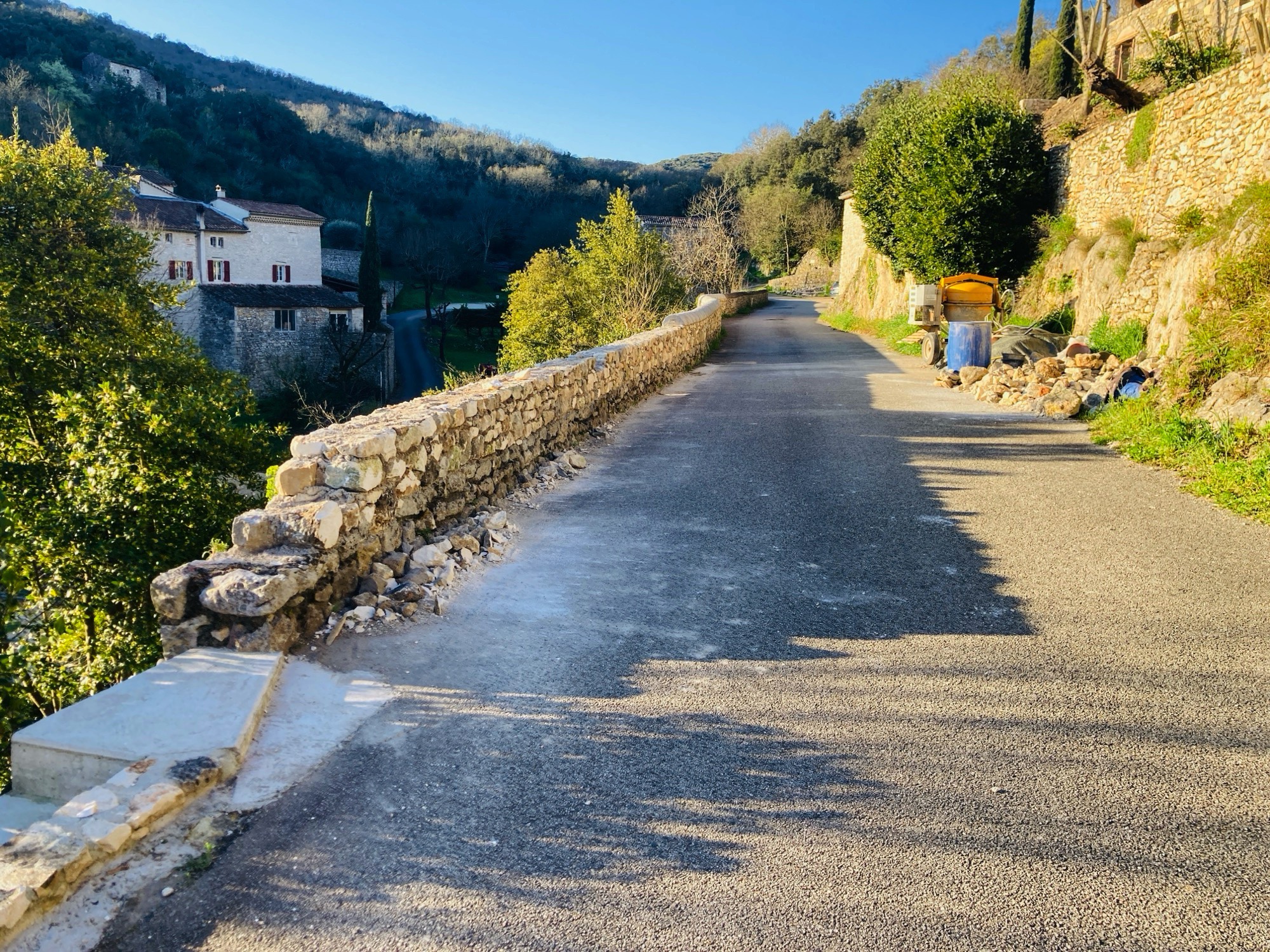 Un aménagement de voirie a été réalisé dans l’impasse de la Cèze afin de sécuriser le cheminement piéton. Les travaux ont notamment consisté en la reprise du muret existant et la pose de nouvelles couvertines, contribuant à structurer l’espace et à clarifier les circulations. Cette opération a été financée au titre des amendes de police, dispositif dédié aux actions en faveur de la sécurité routière.